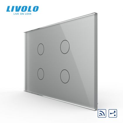 Intrerupator cvadruplu, standard italian, cap scara / cap cruce, control telecomanda RF, cu panou sticla, 3M