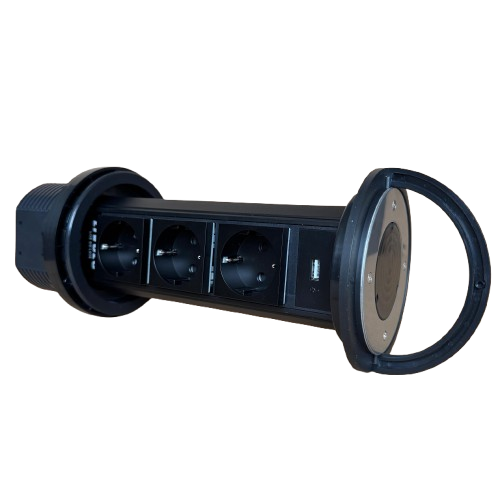 Priza incastrabila Pop Up, Neagra, echipata cu USB, incarcator Wireless + 3 prize 2M