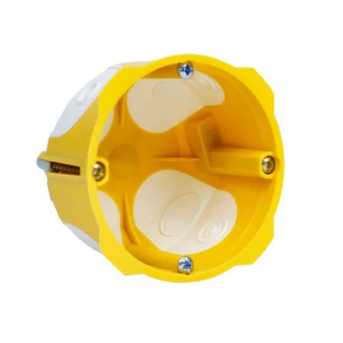 Doza de aparataj, galbena, rotunda, cu montaj incastrat in rigips, Kopos