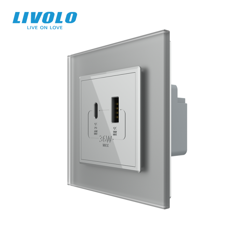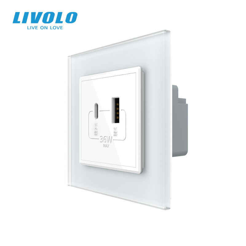 Priza dubla USB + USB tip C, cu rama sticla